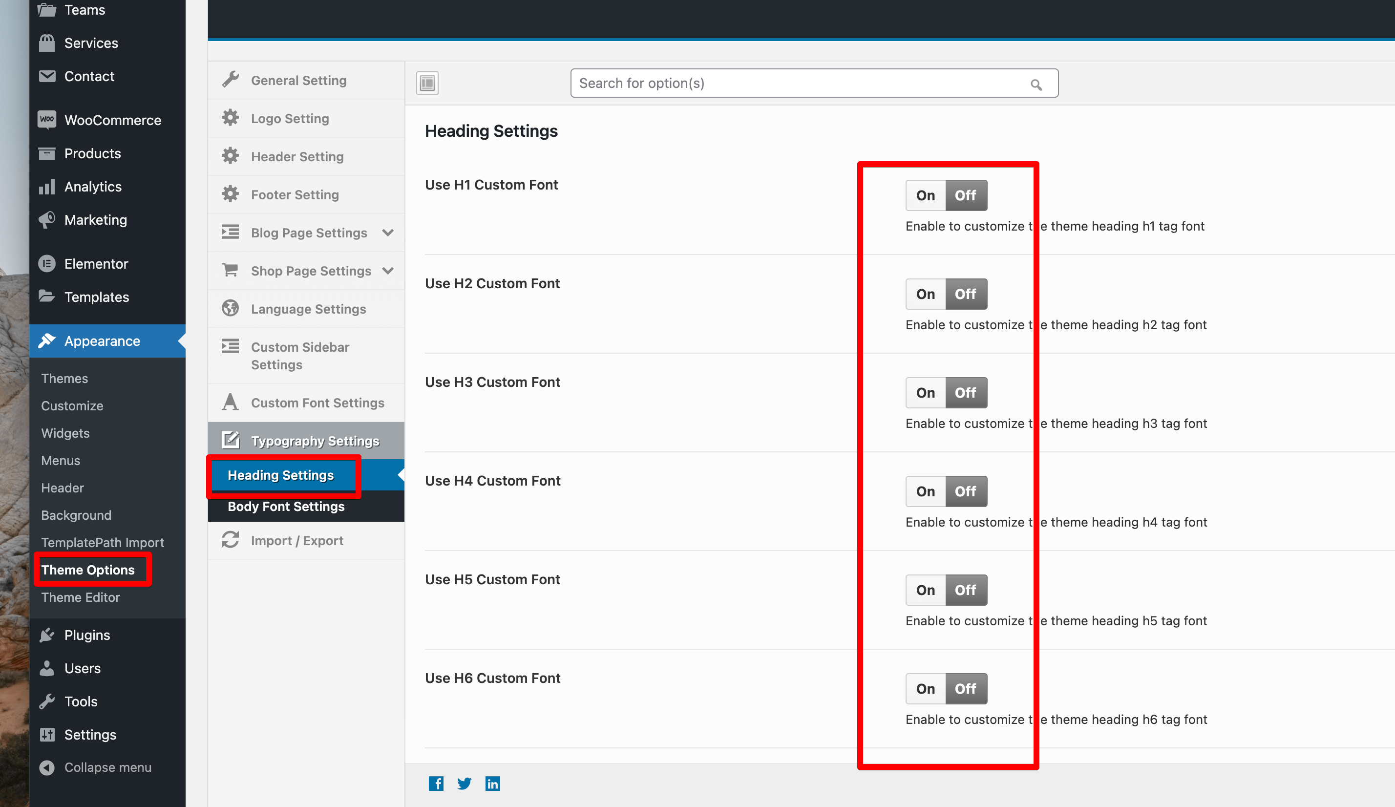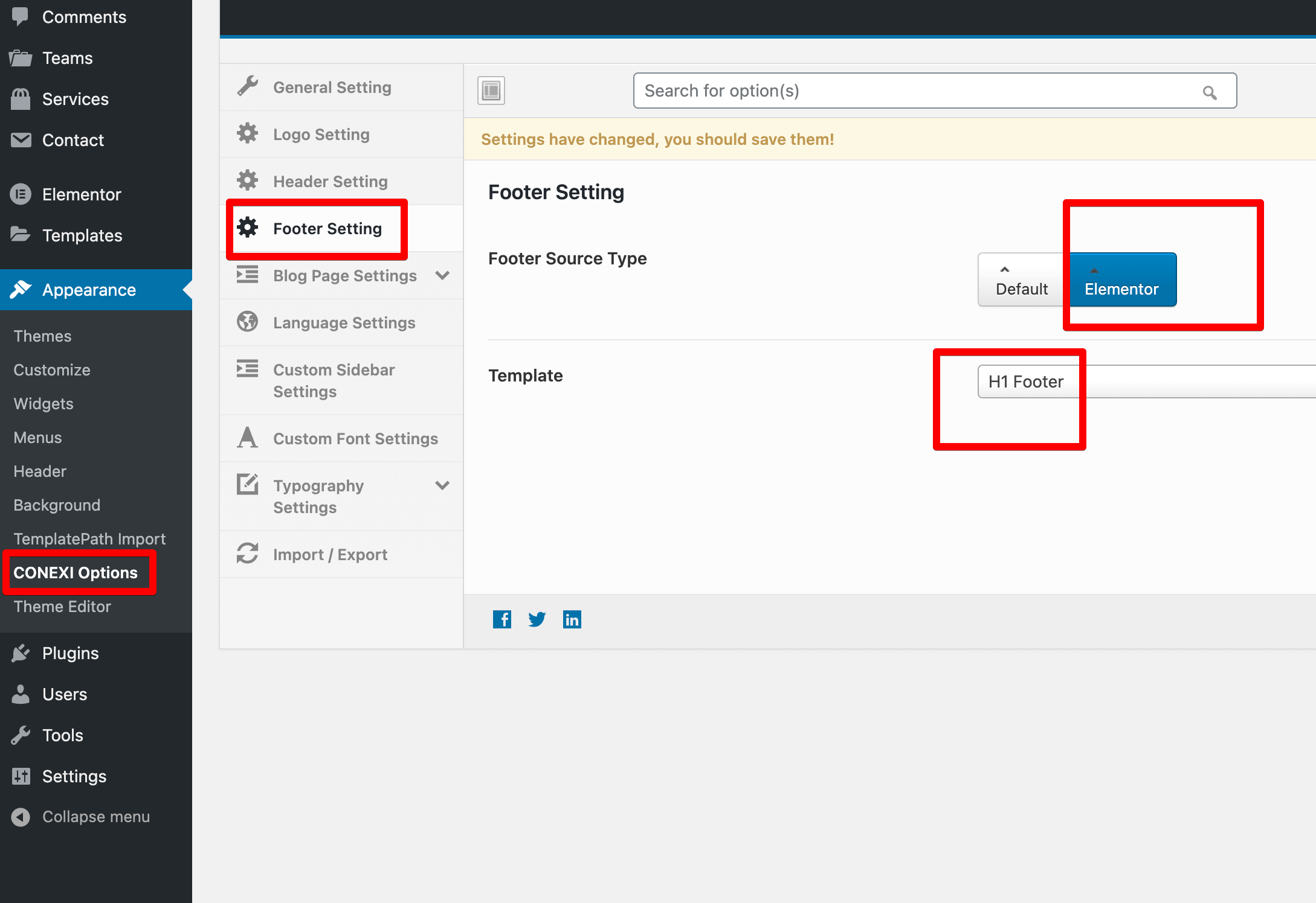 Footer Setting