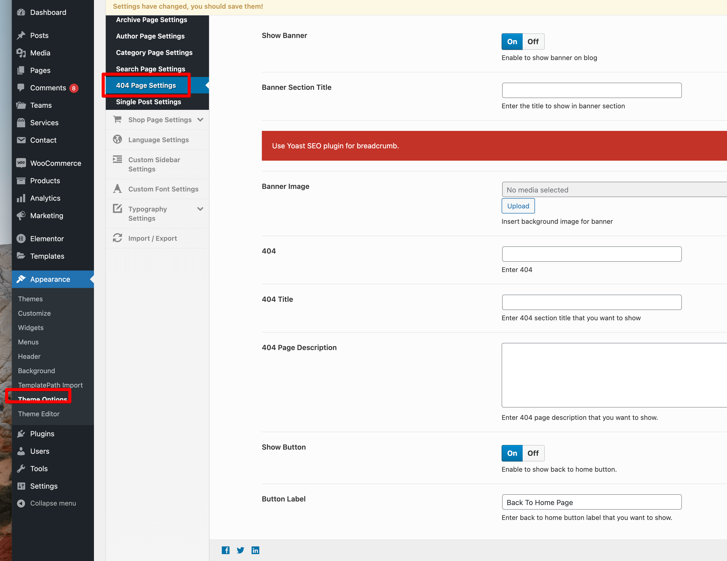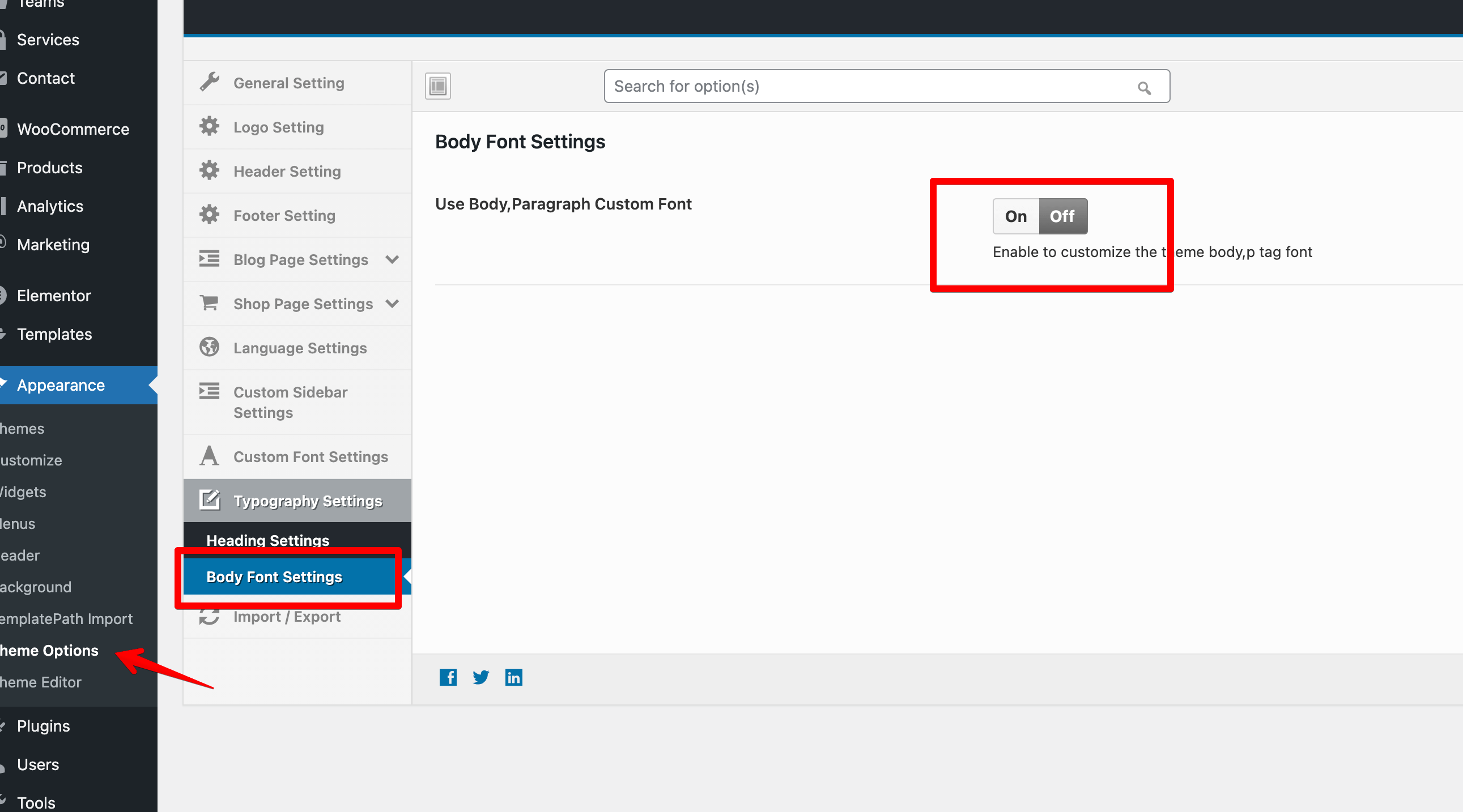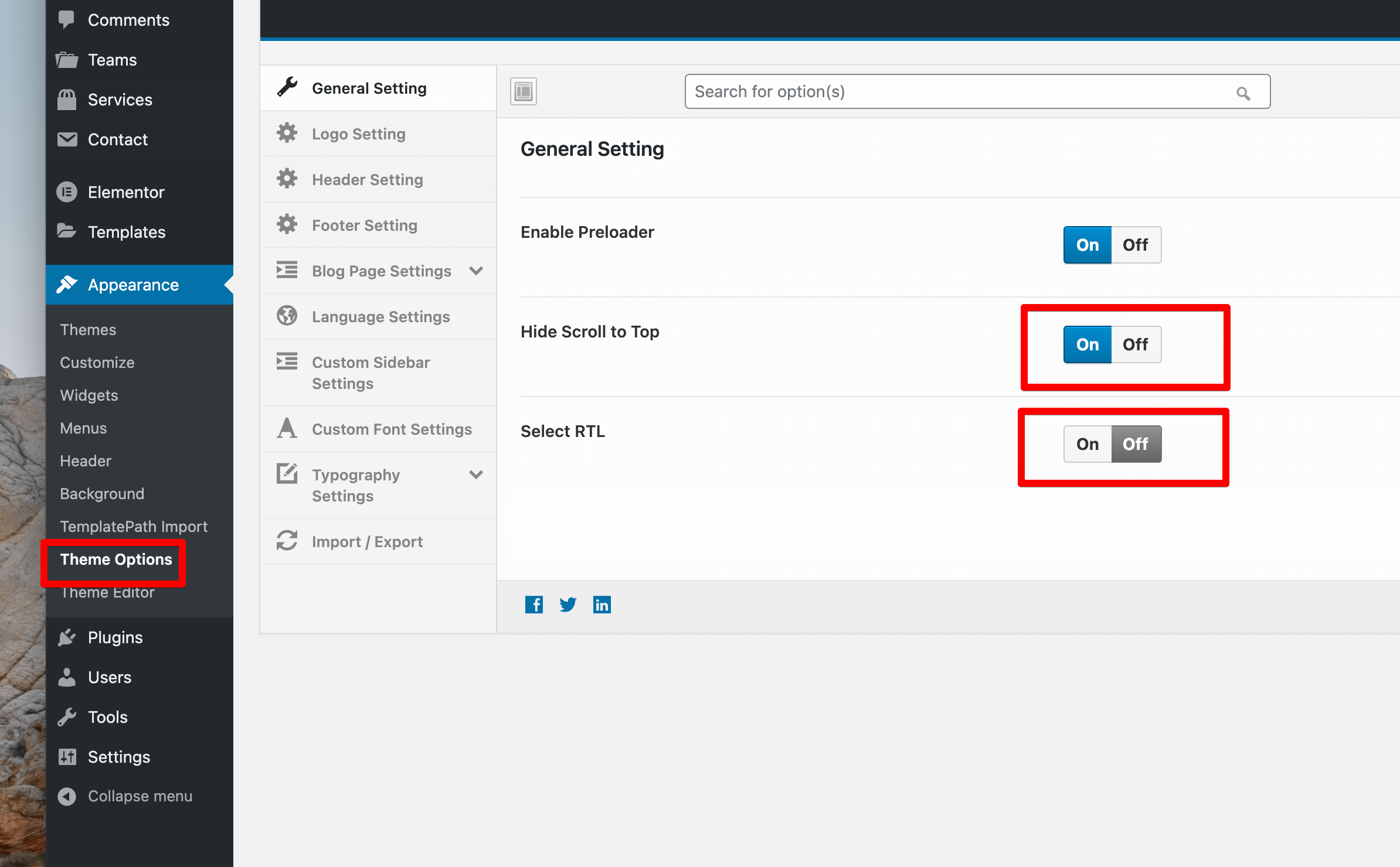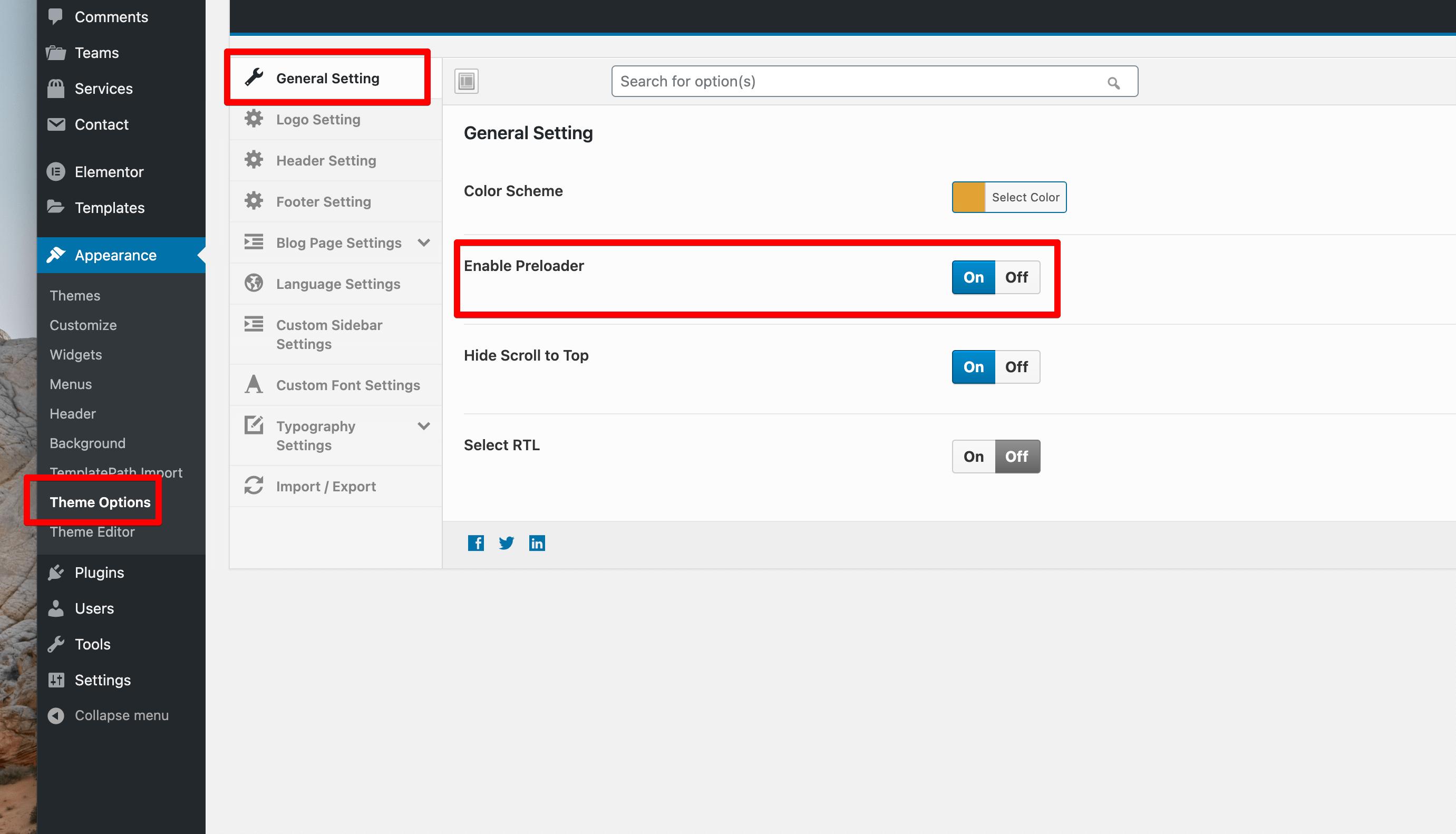 Footer Setting