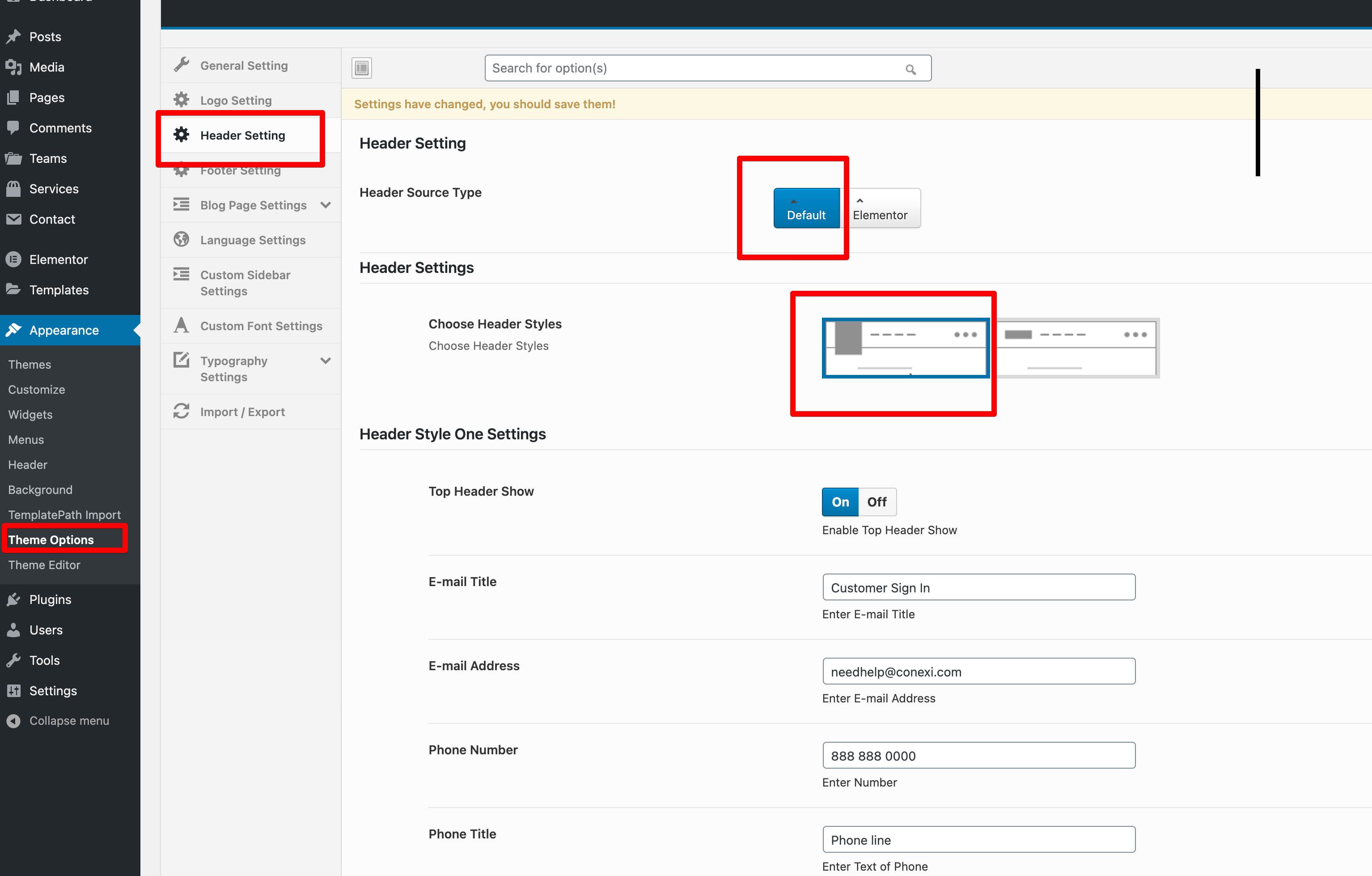 Header Settings